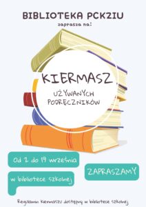 1. W okresie od 02.09.2025 do 19.09.2025 biblioteka będzie organizować kiermasz używanych podręczników.