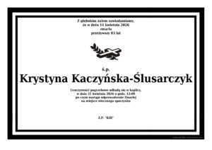 Szanowni Państwo, z głębokim smutkiem informuję, że w dniu 14 kwietnia 2026 r. w wieku 83 lat zmarła Pani Krystyna Kaczyńska-Ślusarczyk, emerytowana nauczycielka oraz wieloletnia pracownica Naszej Szkoły. Pani Krystyna była cenionym pedagogiem, oddanym swojej pracy i młodzieży. Na trwałe zapisała się w historii naszej społeczności szkolnej jako osoba pełna zaangażowania, życzliwości i pasji. Msza święta żałobna odbędzie się 21 kwietnia 2026 r. o godz. 12:00 w kaplicy na Cmentarzu Komunalnym w Wieliczce. Rodzinie i Bliskim Zmarłej składam w imieniu społeczności szkolnej wyrazy głębokiego współczucia. Maciej Filiciak